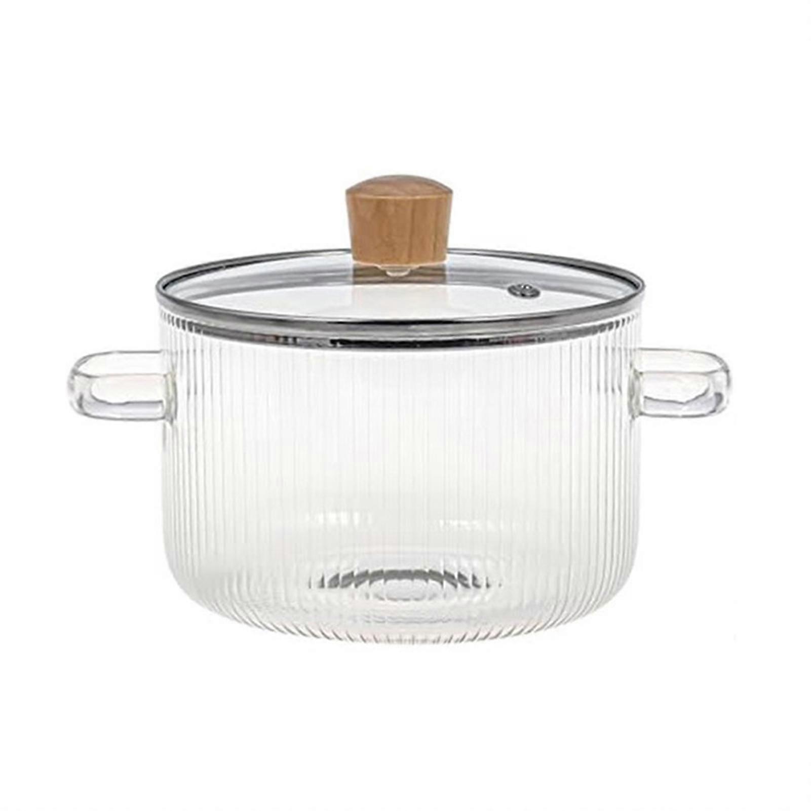 1.6L Double Ear Striped Glass Pot Multi-Purpose Heat-Resistant Pot for Cooking