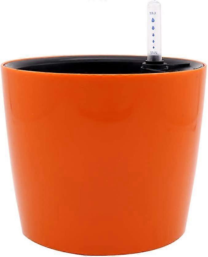 Self Watering Round Flower Pot With Water Indicator Indoor Outdoor Plastic Planter (orange)