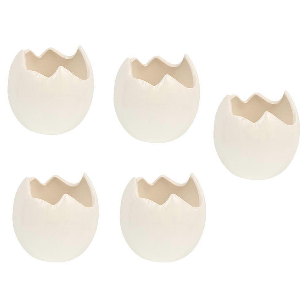 White Ceramic Succulent Flower Pot for Decoration 5Pcs with Eggshell Design