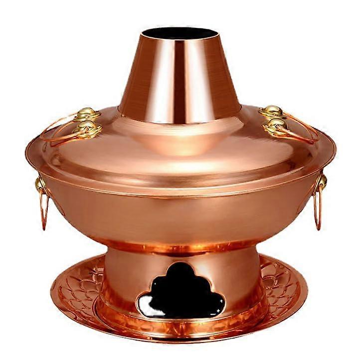 Traditional Chinese Copper Hot Pot, Vintage Shabu Pot, Stainless Steel Charcoal Hotpot Cooker, 20 cm