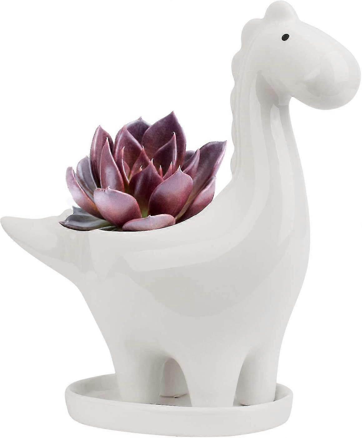 Ceramic Succulent Pot With Saucer, Dinosaur Shape Cactus Flower Pot, Mini Indoor Plant Pot Gift Decoration For Home Office Bonsai Planter Containerwhi