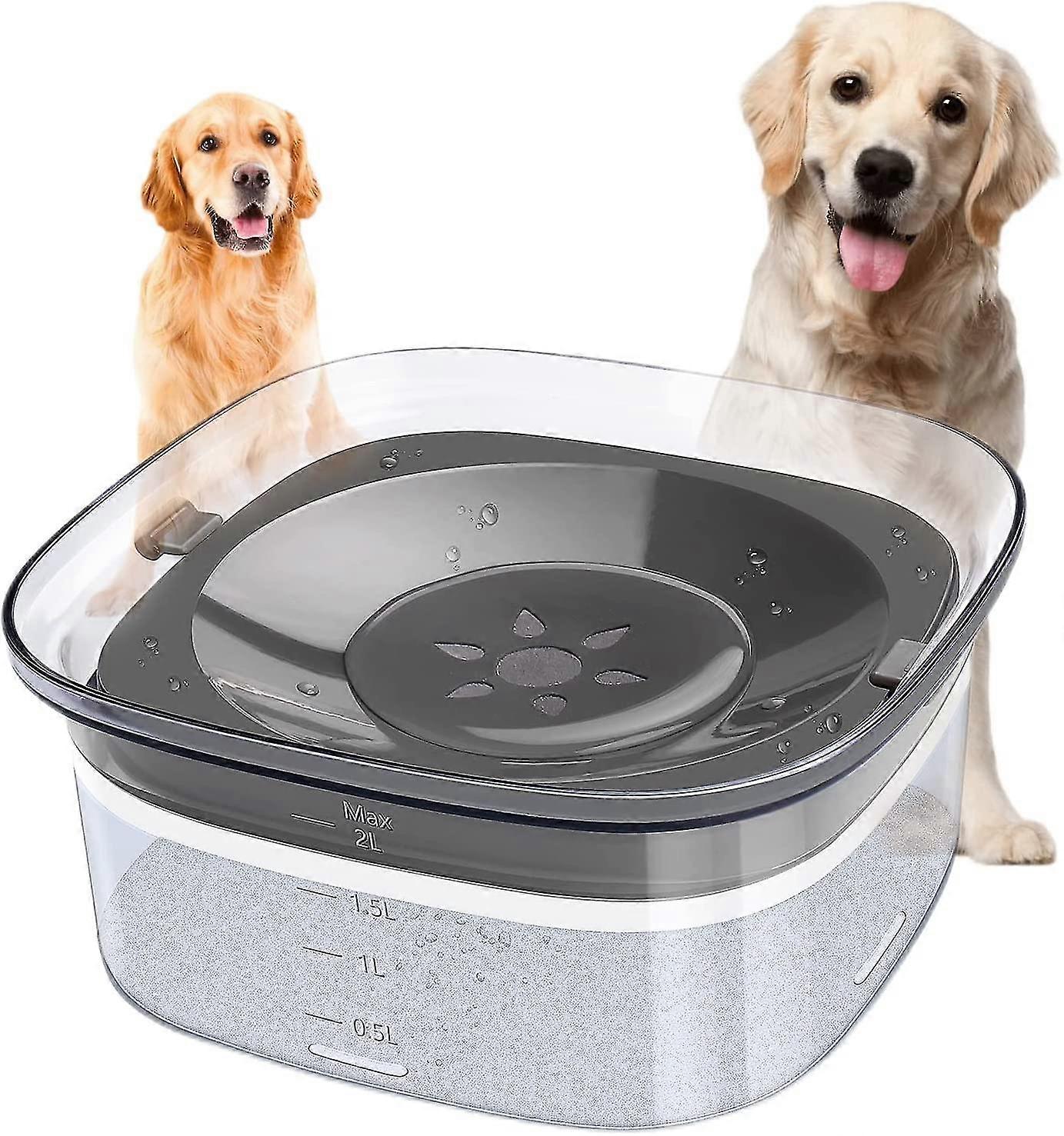 2l Dog Water Bowl, Large Capacity Spill Proof Dog Bowl, Anti-choking No Spill Water Bowl With Slow Water Feeder