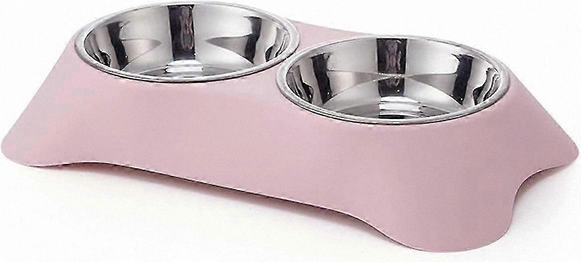 Non-Slip Double Bowl for Small Pets, Stainless Steel Pink M Size