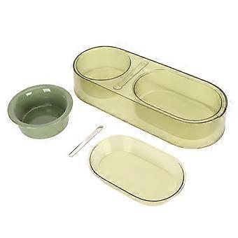 Cat Double Bowl Ceramic Cat Water Food Bowl Stylish Multifunctional Double Bowl with Mixing Spoon for Pet Green