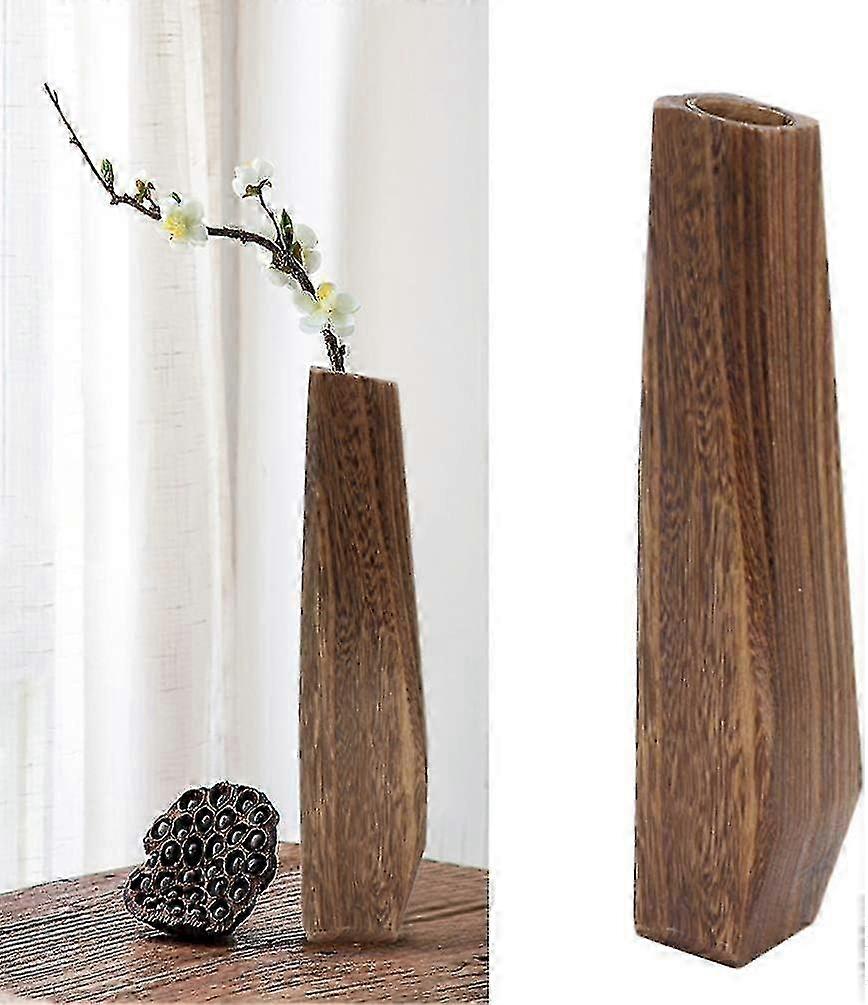 Handmade Wood Plant Pot - Tall Decorative Vase for Indoor Flowers and Home Decor