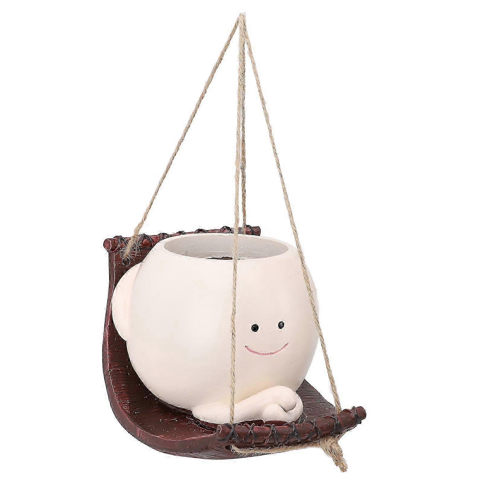 Swing Face Plant Pot Hanging Cute Head Resin Flower Pot Indoor Outdoor Plants Succulent Pot for String of Pearls Plant
