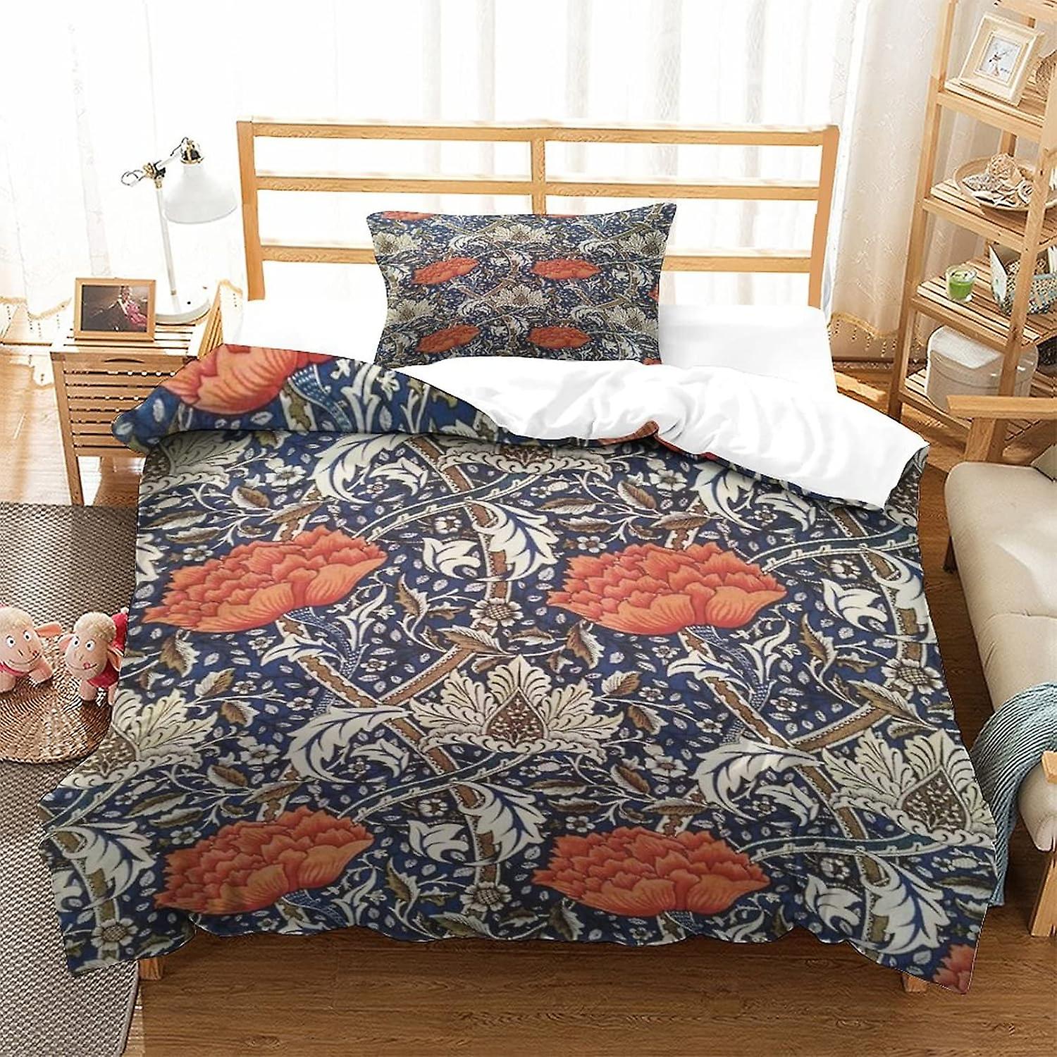 William Morris Duvet Cover with Pillowcases 3D Printed Luxury Soft Bedding Easy Care Set with Zipper Flower Pattern Floral Watercolour Closure Unique