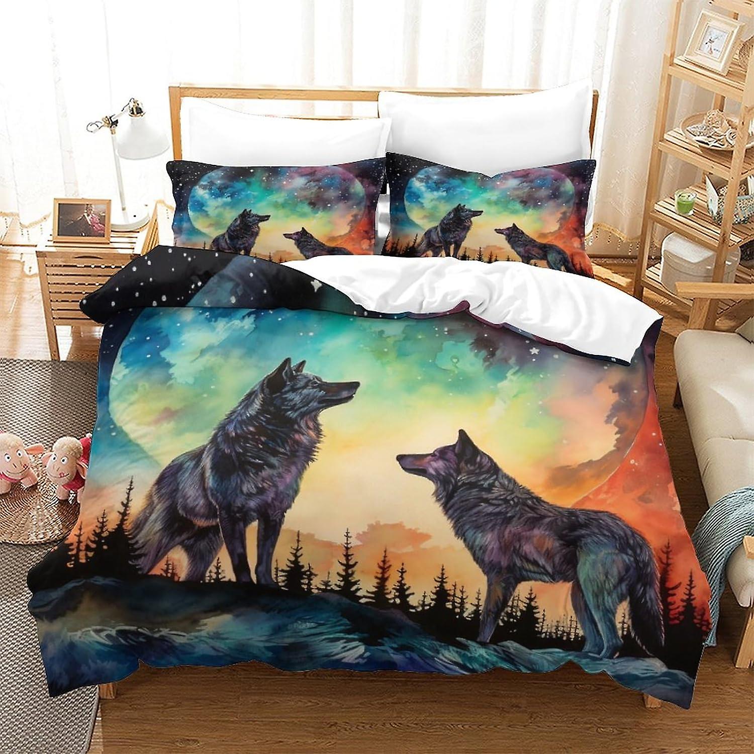 Wolf Pack Bedding Duvet Cover Set Full Moon 3D Printed Duvet Bedspreads Set for Adult Kids No Comforter King