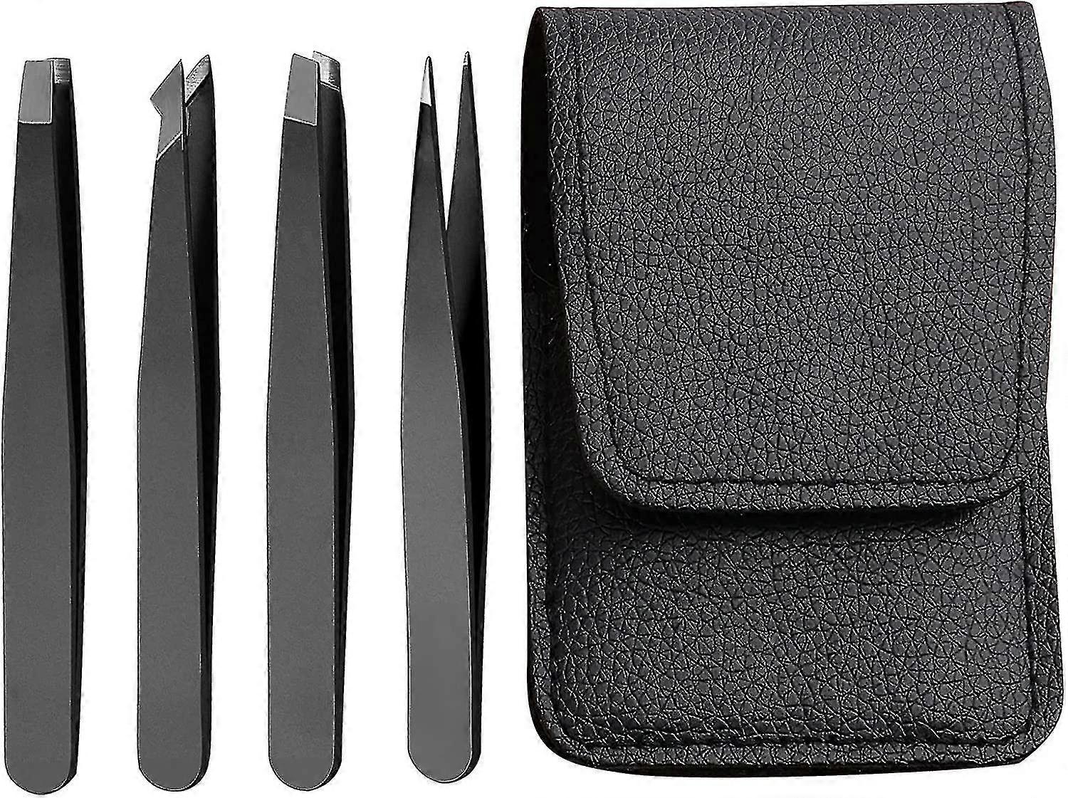 Yaju Professional Tweezers Set, With Leather Case And Snap Stainless Steel Precision Tweezers For Removing Eyebrows Facial Hair