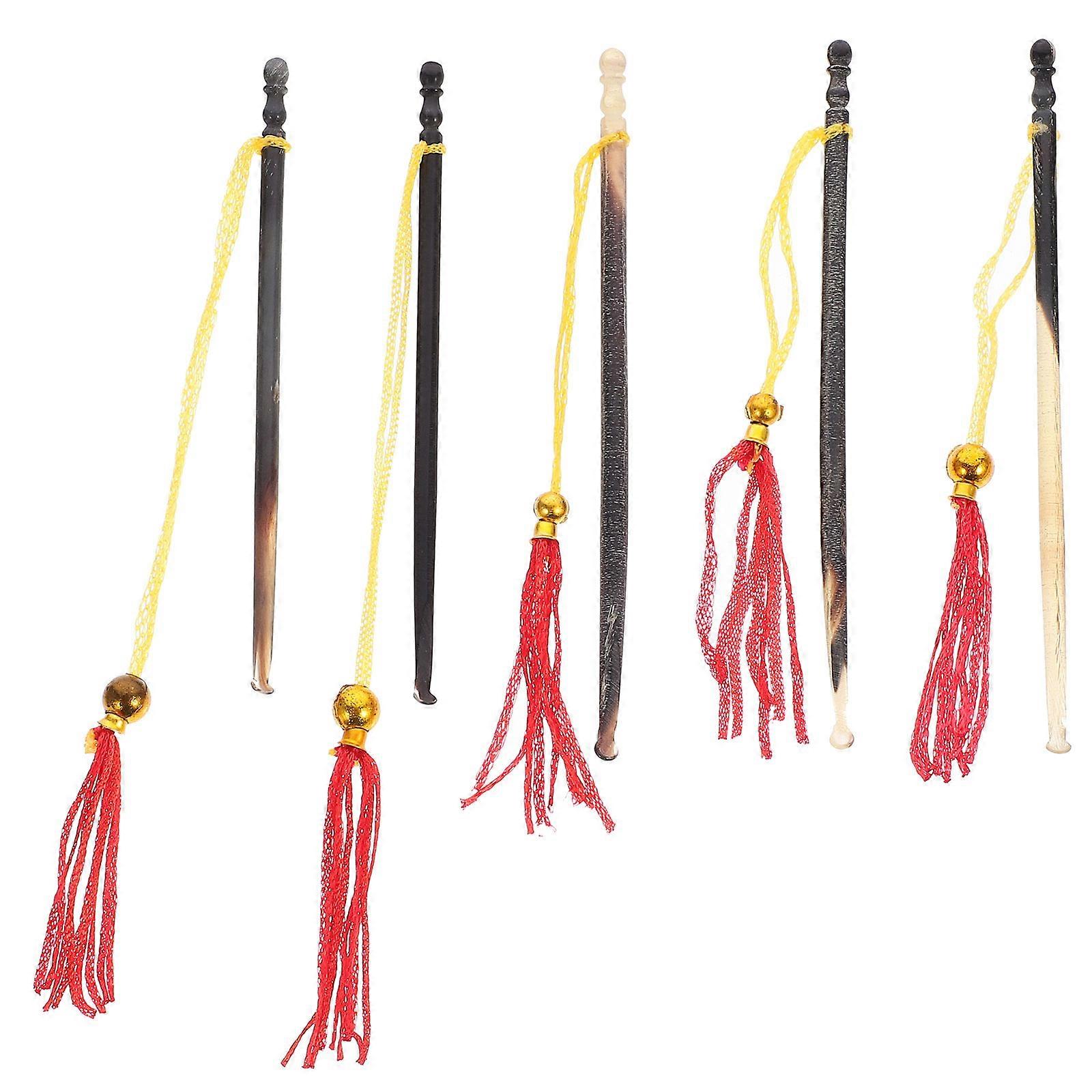 Durable Horn Ear Picks with Tassel Lanyard for Daily Use 5pcs