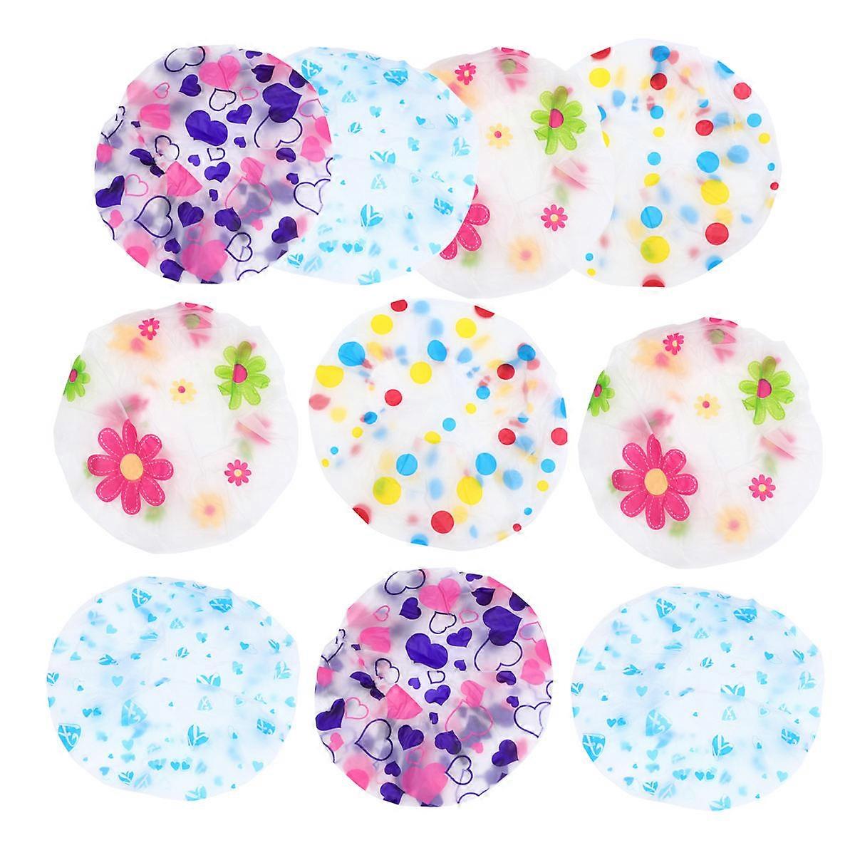 Prints Shower Caps Waterproof Bathing Head Cover for Adults Beauty Salon Use Assorted Color 27x27x0.2cm 10Pcs