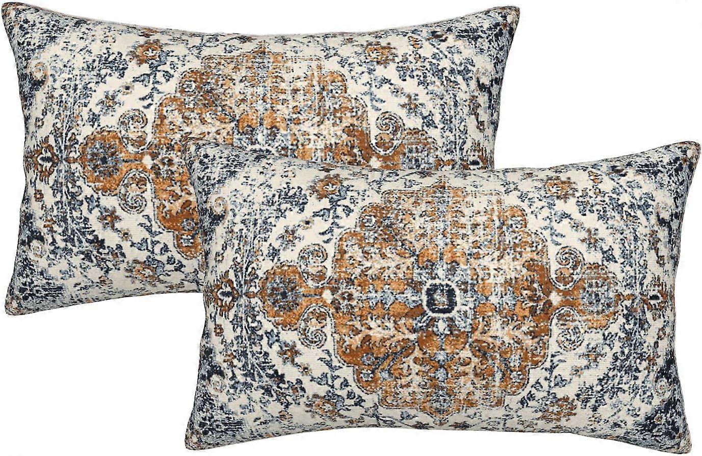 Rust Blue Pillow Covers 12x20 Inch Set of 2,Boho Throw Pillows Case,Carpet Pattern Ethnic Design Outdoor Decorative Square Linen Farmhouse Decor Cushi