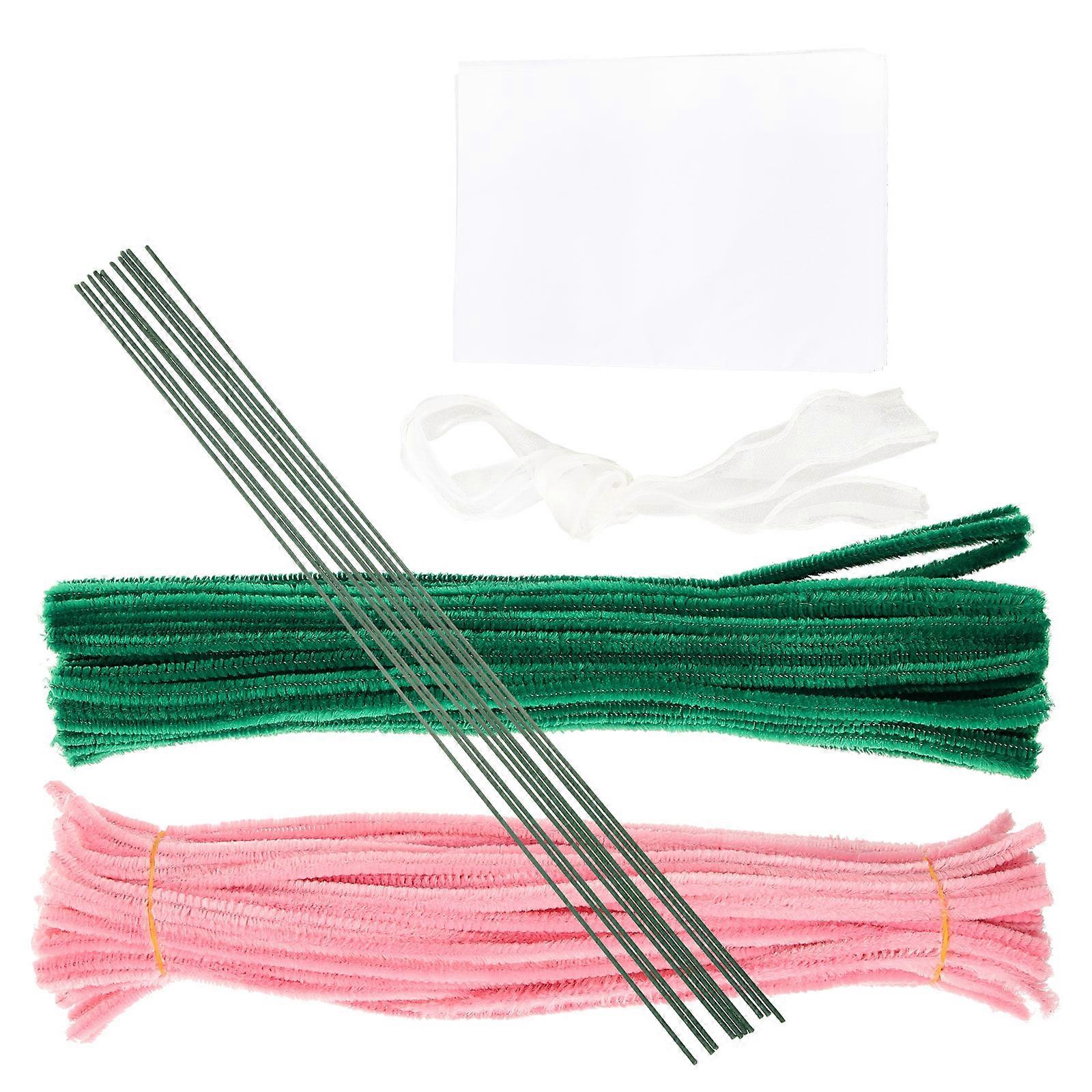 Flexible Chenille Stems DIY Craft Twisting Sticks with Wire for Floral Bouquets, Handmade Decorations, and School Projects – Pink Tulip Kit with