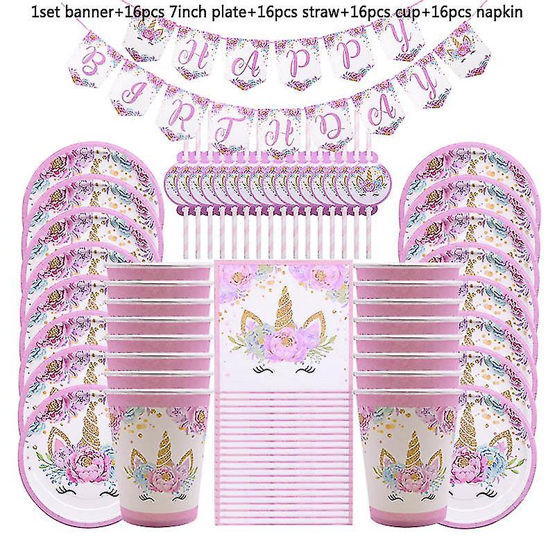 Unicorn Disposable Tableware Unicorn Party Supplies Paper Plate Cups Napkins Unicorn Birthday Party Decoration Baby Shower Girl65pcs Setb
