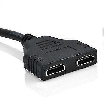 HDMI-uros - kaksois HDMI-naaras 1-2-tie HDMI-jakajasovitinkaapeli HDTV:lle, tukee kahta televisiota samanaikaisesti, yksi sisään, kaksi ulos (musta).