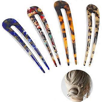 شوكة دبوس الشعر على شكل حرف U ، دبابيس الشعر على الطراز الفرنسي ، شوكات الشعر السلحفاة قذيفة للشعر الطويل ، 2 الشق Updo Chignon دبوس لتصفيفة الشعر
