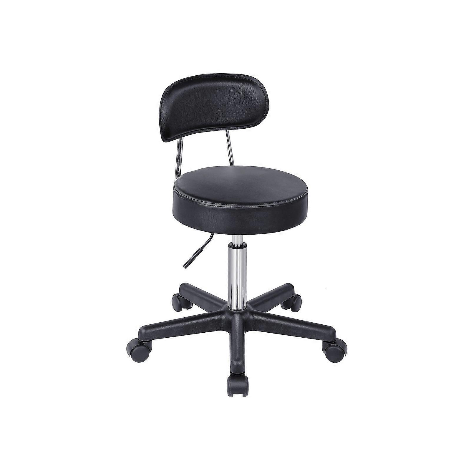 Homestorecity barkruk met zwenkwielen, in hoogte verstelbare rolkruk, kunstleren zitting, werkkruk voor schoonheidssalons, kantoren en medische praktijken, zwart - Homestorecity werkkruk voor efficiënt werken. Deze werkkruk vergemakkelijkt werkprocessen en biedt de mogelijkheid om de zitpositie aan te passen aan individuele behoeften. Dankzij de traploos verstelbare zithoogte, gasveerdemping en comfortabele rugleuning is comfortabel en ontspannen zitten gegarandeerd. Deze rolkrukken zijn perfect, vooral in serviceruimtes zoals kappers of in de productie aan lopende banden, waar elke beweging perfect moet zijn. Productdetails: - Kleur: zwart - Materiaal: PU, nylon - Zithoogte: 46-62 cm - Dikte zitting: 8 cm - Diameter zitting: 35 cm - Diameter voet: 50 cm - Draagvermogen: 100 kg - Nettogewicht: 4,8 kg - Brutogewicht: 6 kg Leveringsomvang: - 1 x werkkruk - 1 x gebruiksaanwijzing (DE, EN, FR, ES, IT) - 1 x opbergtas Homestorecity-opmerkingen: - Ga niet op de zitting staan. - Leun niet te ver naar achteren. - Beweeg of draai niet te snel op de wielen. - Voor onderhoud kunt u een vochtige doek gebruiken. Bescherm het PU-oppervlak tegen chemicaliën.