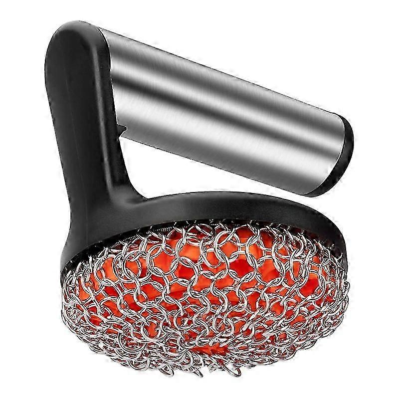 Cast Iron Scrubber with Handle, Stainless Steel Chainmail Cleaner for Pans and Skillets - Cast Iron p