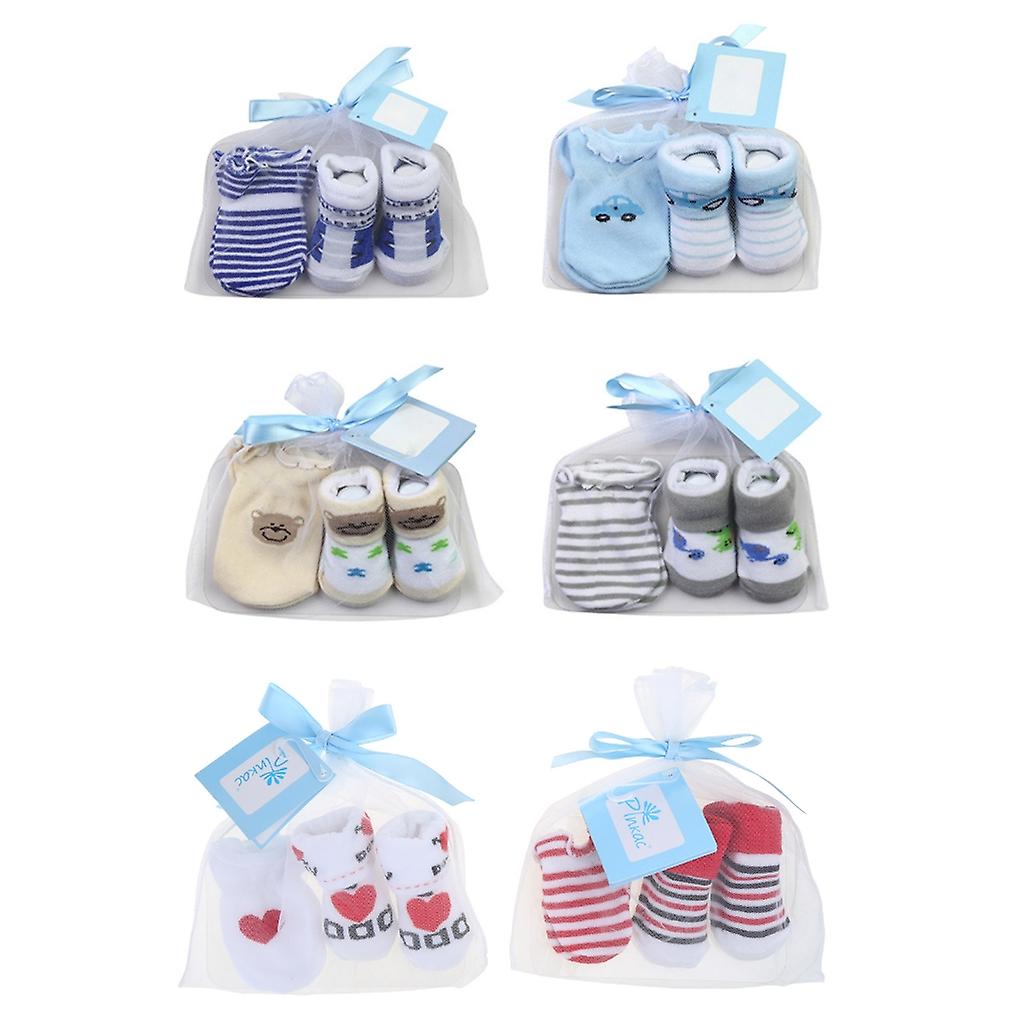 1 Pair Cartoon Soft Baby Cotton Socks 1 Pair Anti-scratch Gloves Set For Baby