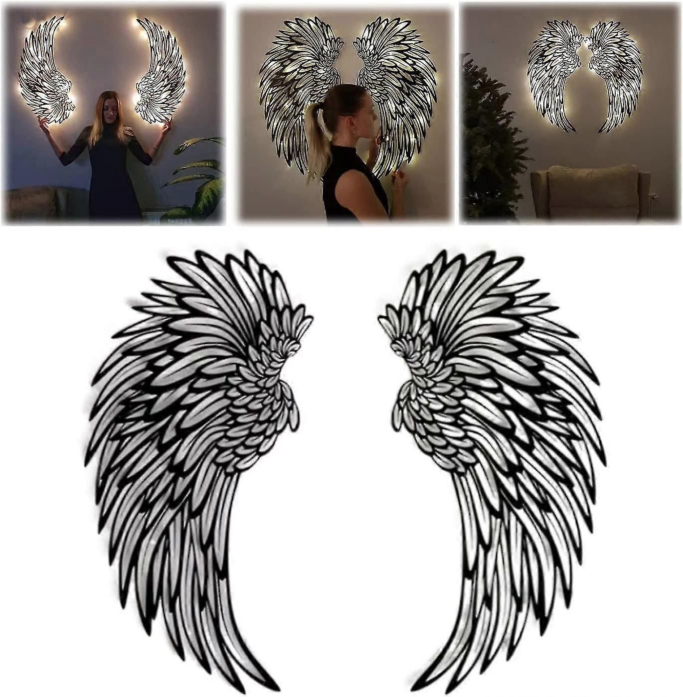 1 Pair Angel Wings Metal Wall Art Decor With Led Lights, 3d Angel Wings Wall Sculptures Decor For Home Bedroom Living Room Garden Office -aqwg