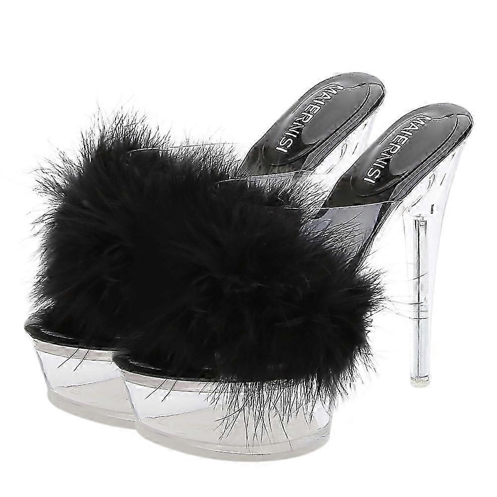 1 Pair Fluffy Sandals Girl High Heel Fluffy Slippers Sexy High Heel Slippers