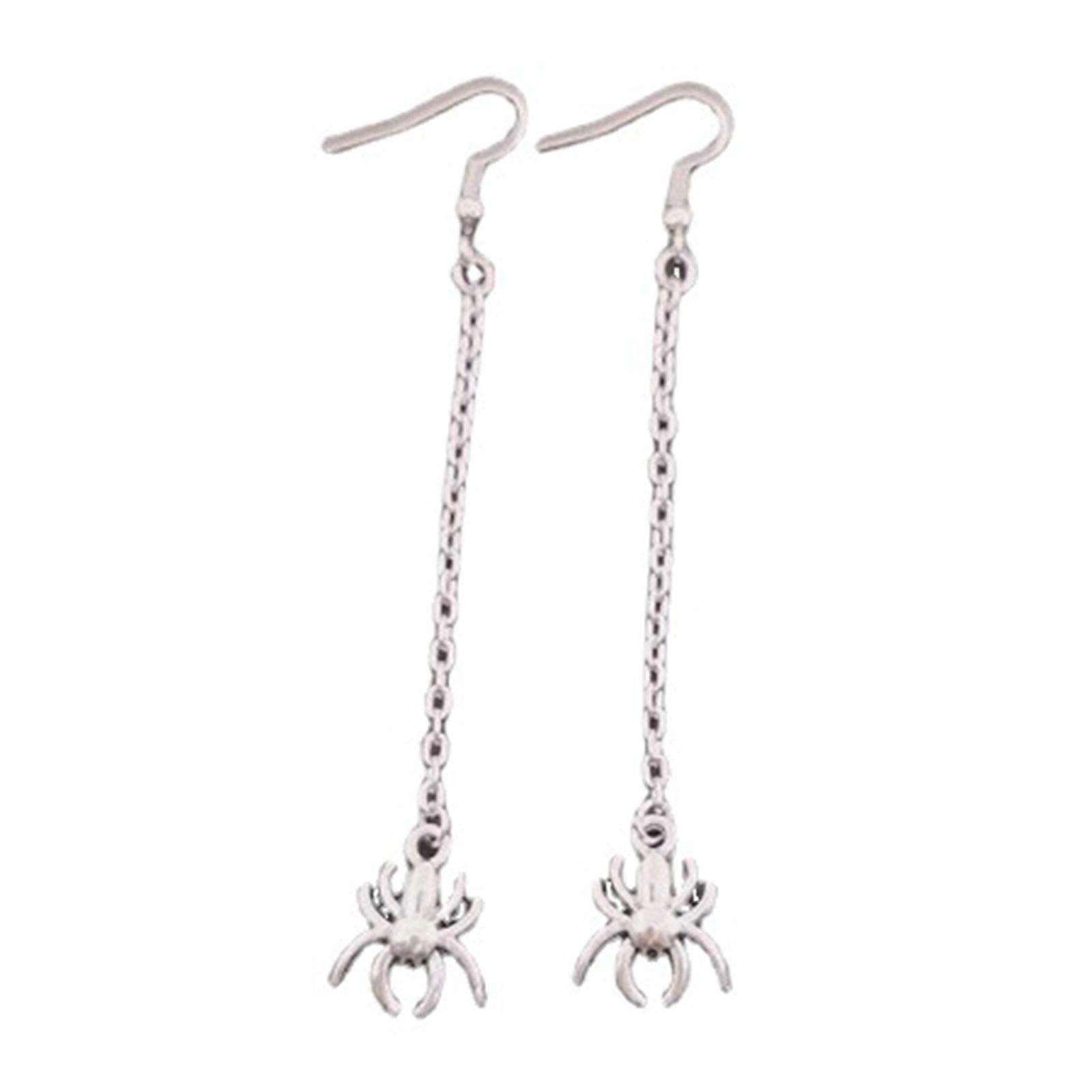 1 Pair Long Chain Fringed Spider Dangle Earrings Halloween Costume Accessories