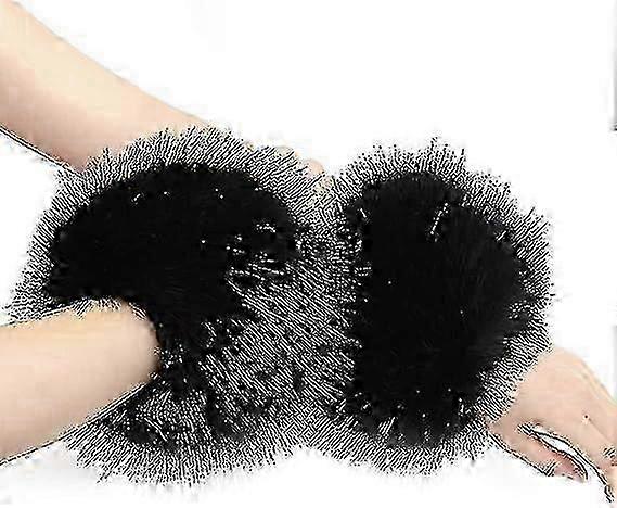 1 Pair of Plush Arm Warmers, Pulse Warmers for Women, Fur Faux Leather Cuffs, Gloves, Pulse Warmers, Faux Leather Winter Wrist Warmers for Sweaters, C