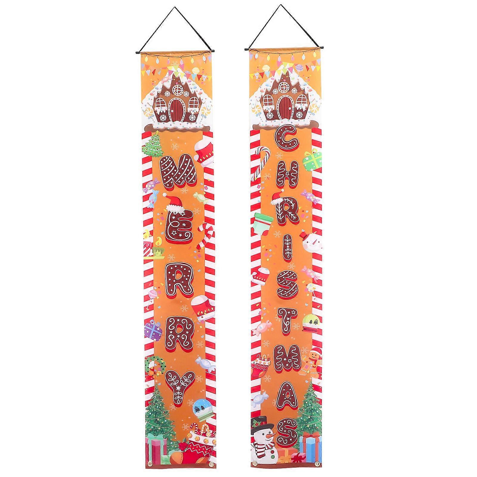 1 pair of Christmas Banners Porch Sign Hanging Sign Banner Xmas Welcome Door Sign
