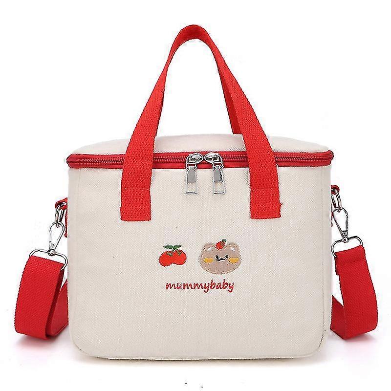 1pc Insulated Lunch Bag for Kids/Adults - Reusable Lunch Box Bag with Large Compartment and Shoulder Strap Cute Embroidery Lunch