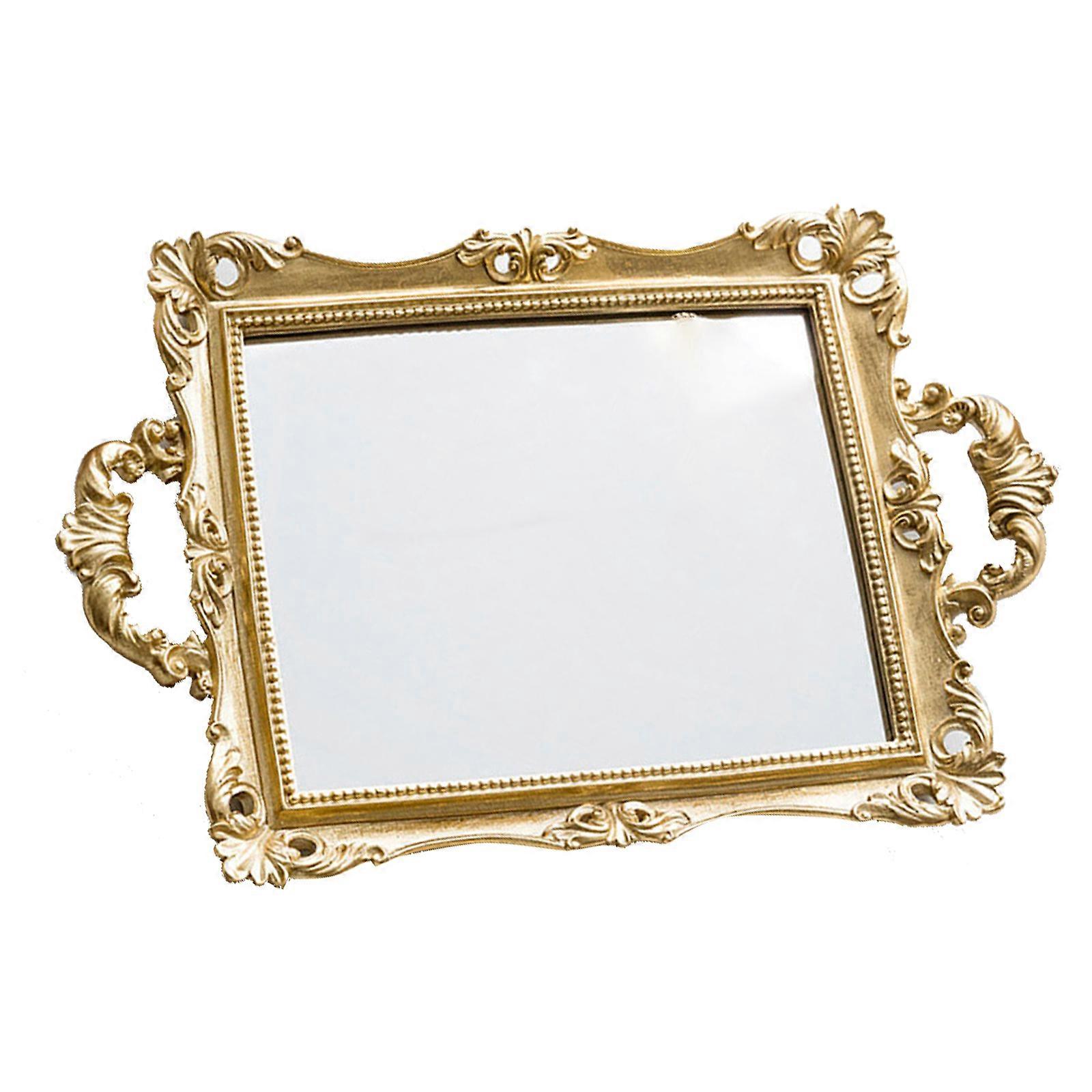 1PC Vintage Carved Mirror Tray Wedding Dessert Table Storage Adornment (Golden)