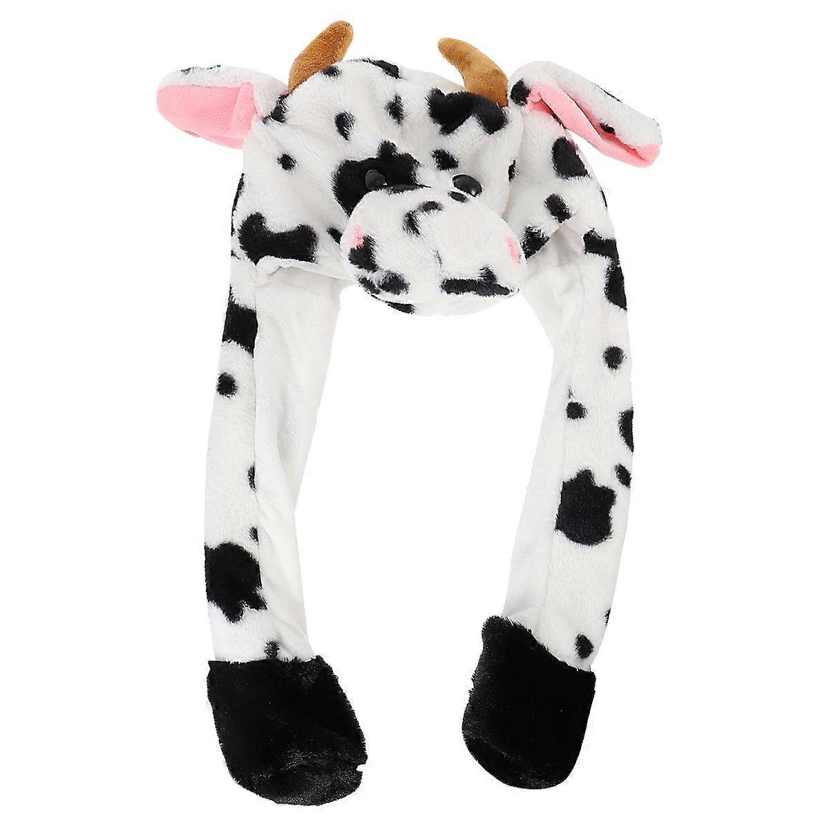 1pc Fluffy Cartoon Animal Cow Hat Cartoon Animal Plush Hat Simulation Hat