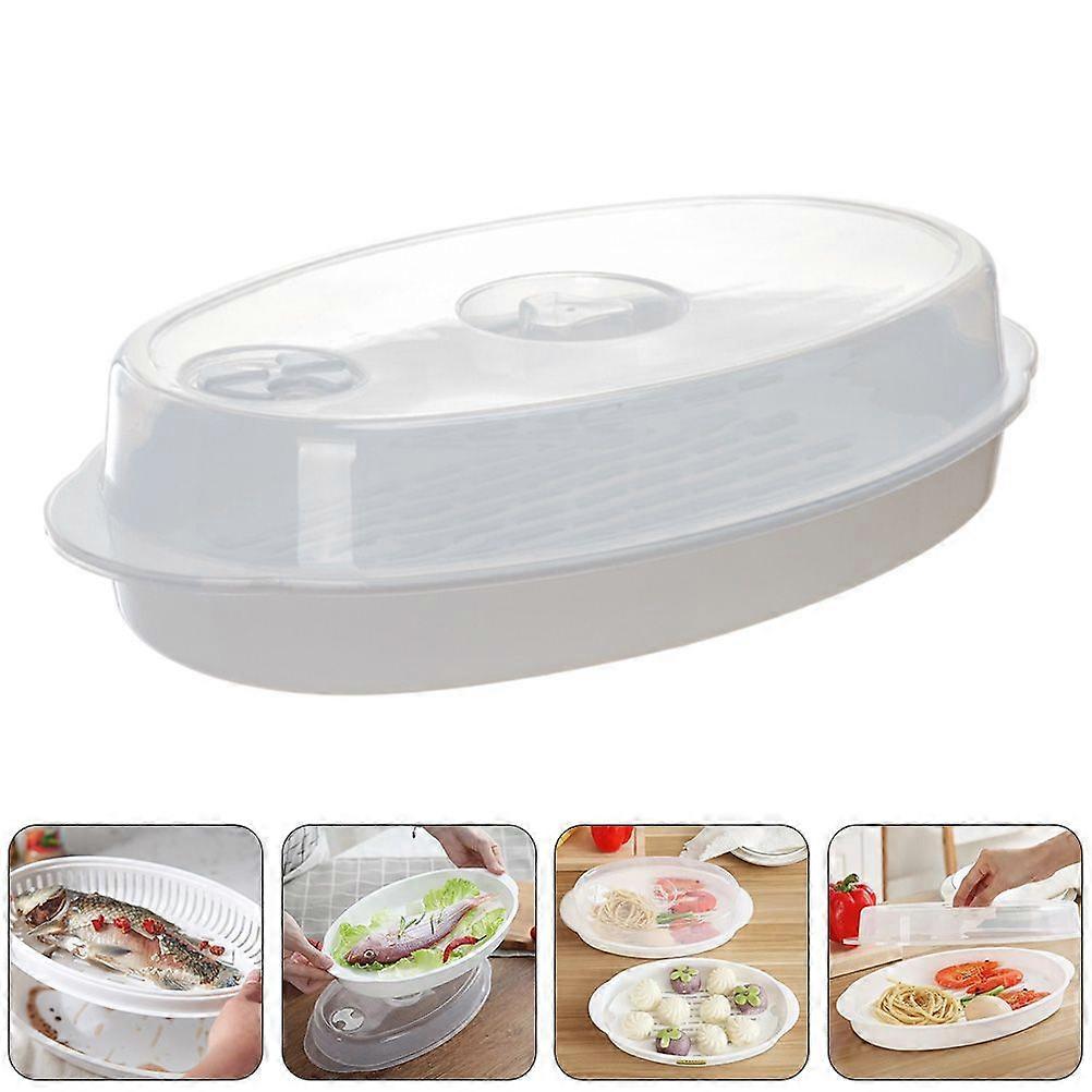 1pc Food Steamer Plate Microwave Oven Steamer Kitchen Plate with Lid (White)