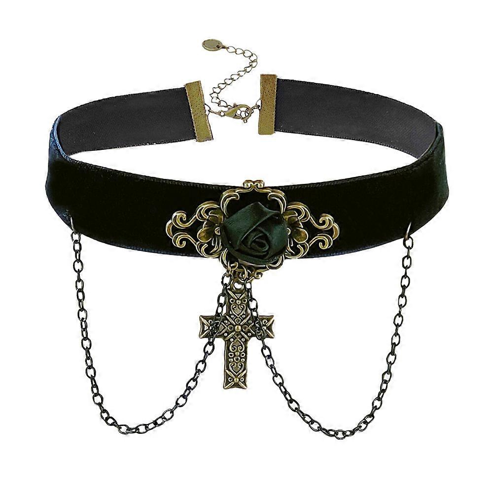 1pc Girl Jewelry Rose Necklace Retro Style Cross Pendant Necklace Girl Choker