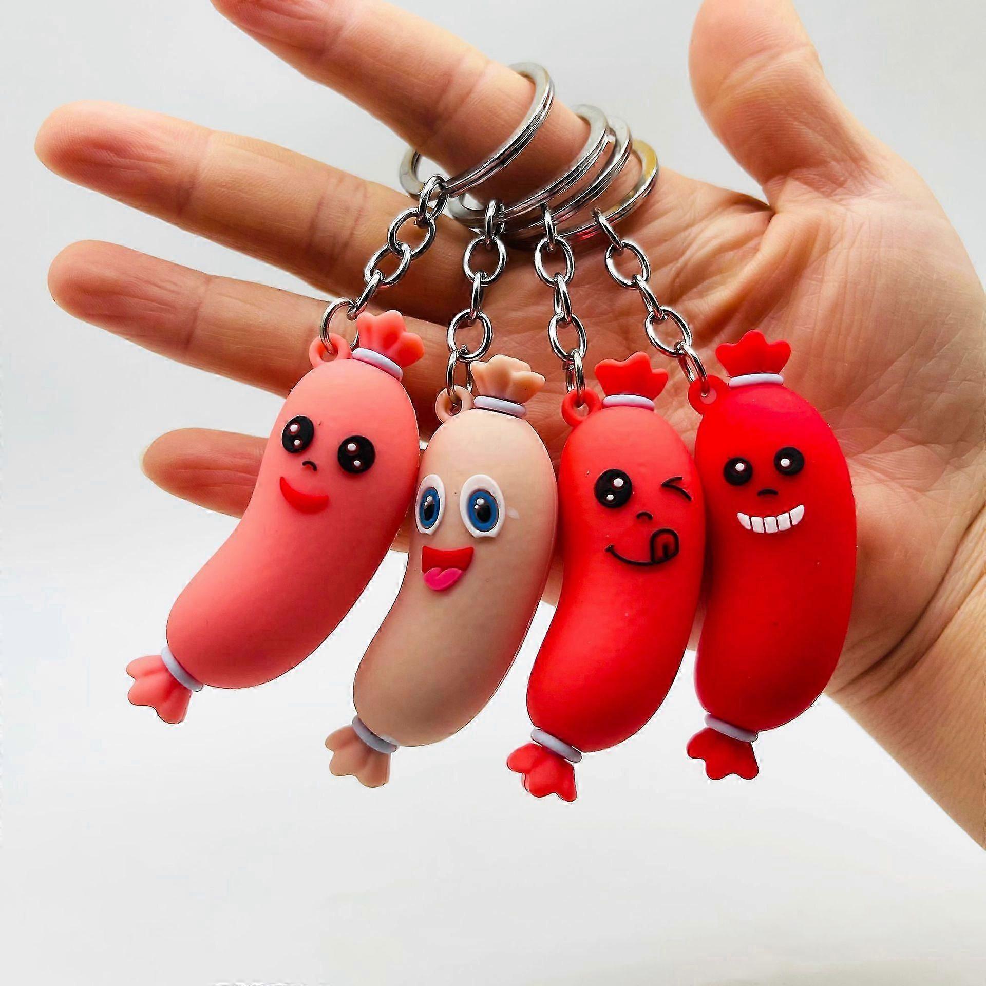 1pcs Cute Cartoon Sausage Key Chain Doll Key Ring For Women Girls Bag Pendant Food Figure Charms Keychain Jewelry Gift-Good
