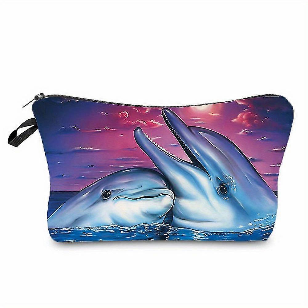 1pc Cute Dolphin Turtle Fish Print Makeup Bag, Travel Versatile Pouch, Portable Cosmetic Storage Bag For Women Girls Halloween GiftsXmas
