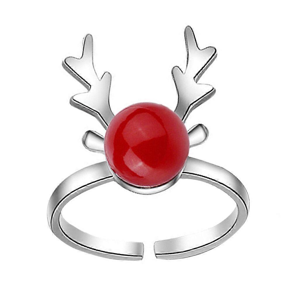 1pc Mini Antler Shaped Ring Christmas Sweet Style Finger Decoration (White)