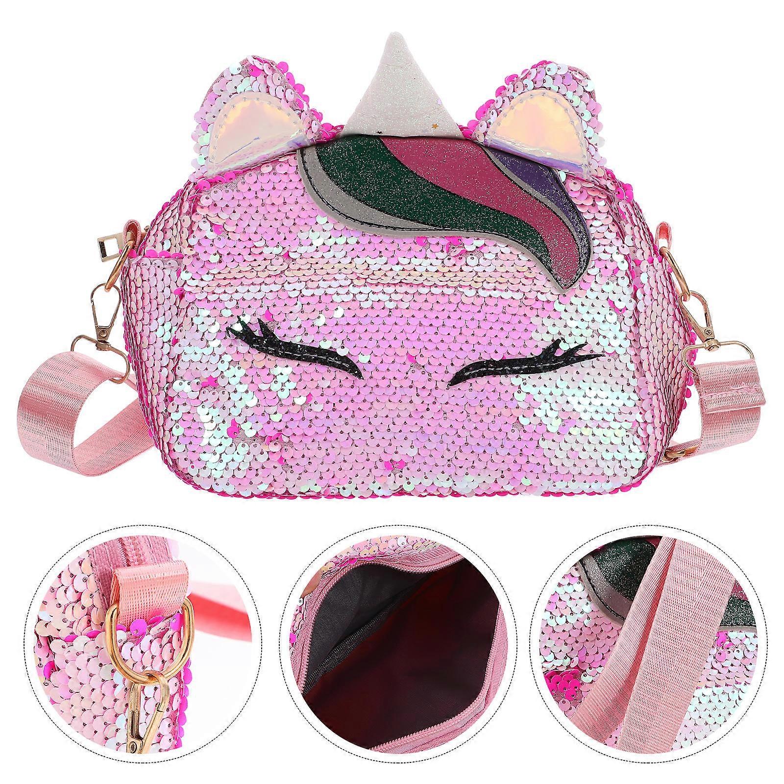 1PC Mini Unicorn Shaped Sequins Ear Handbags Girls Casual Chain Messenger Crossbody Purse Shoulder Bag (White Anti-pink)