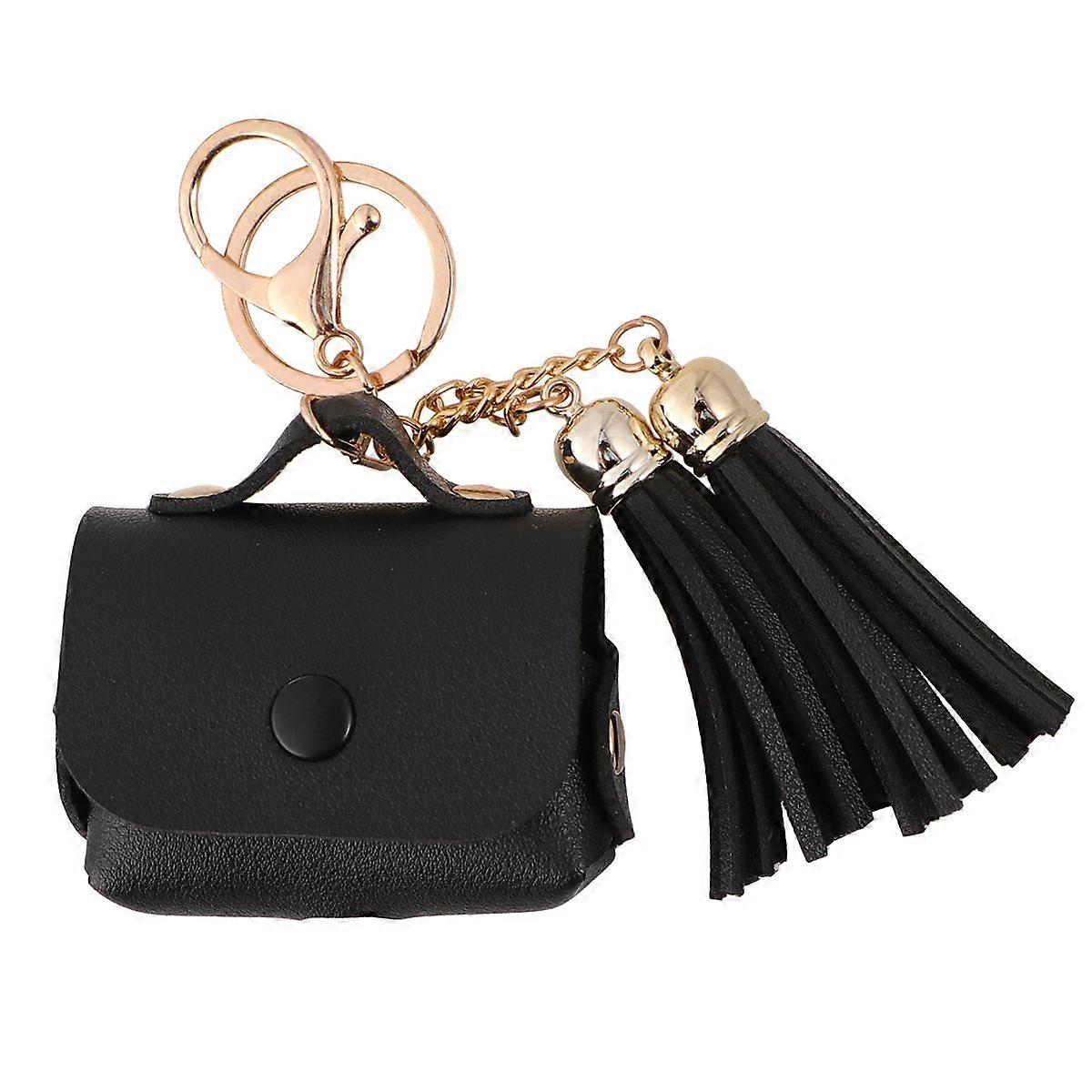 1pc Leather Wireless Earphone Protective Case Earphone Shell Cover Compatible for AirPods Pro 3 (Cover + Tassel Black)