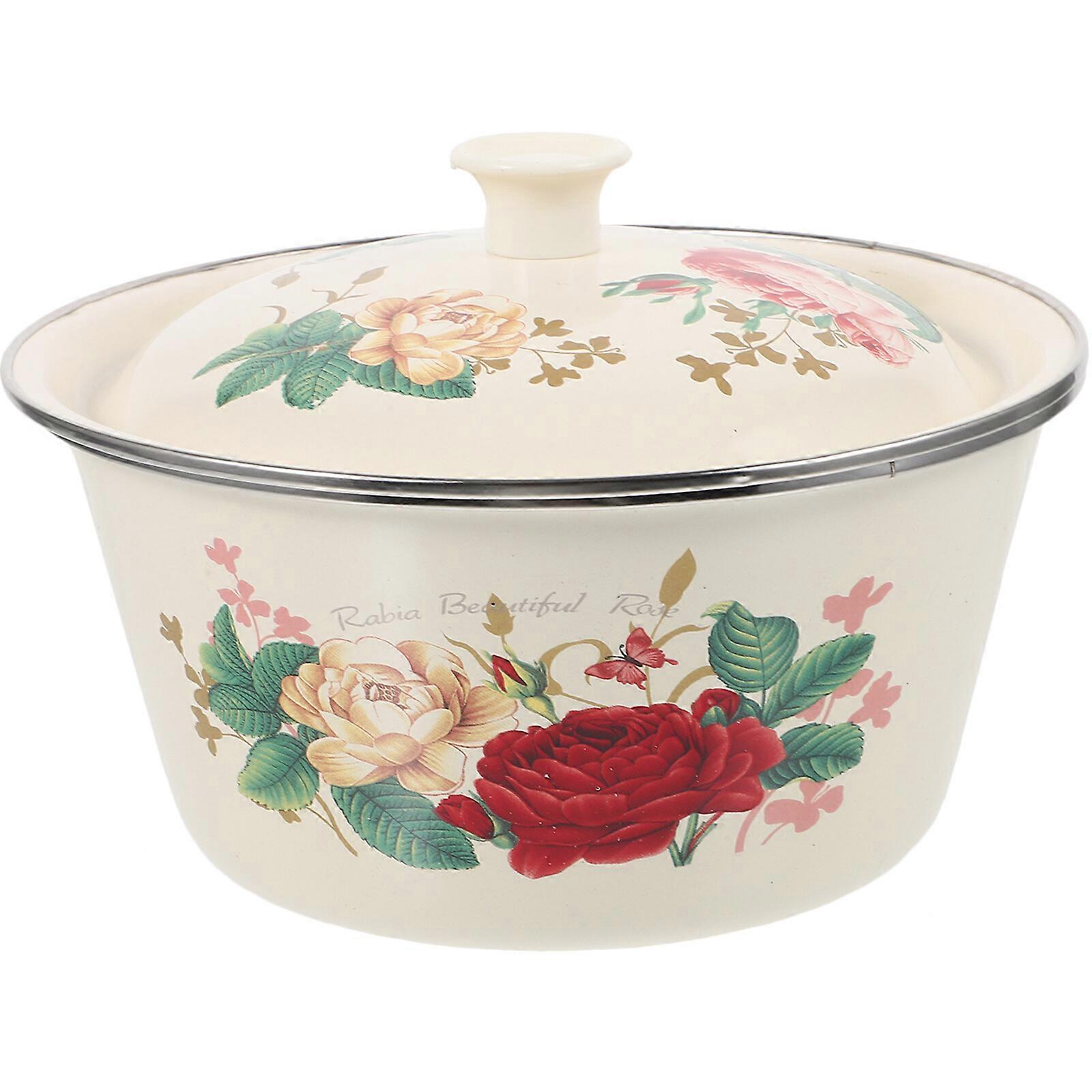 1pc Vintage Enamel Pot with Lid Kitchen Storage Holder Household Soup Basin