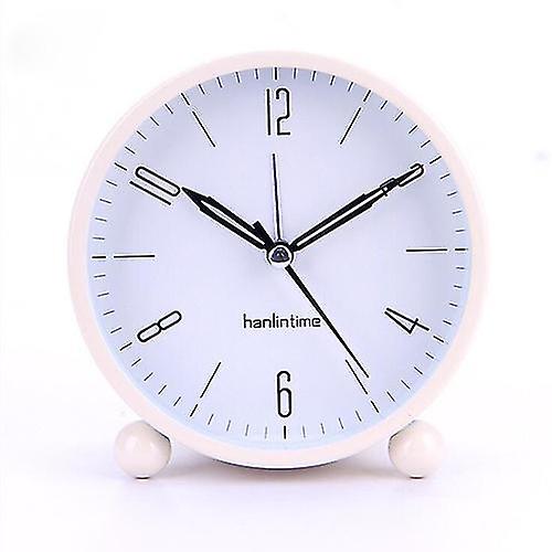 1pc 4.5 Inches Simple Round Alarm Clock Silent Pointer Metal Material Night Light For Student Children Home Decor Desktop Clock