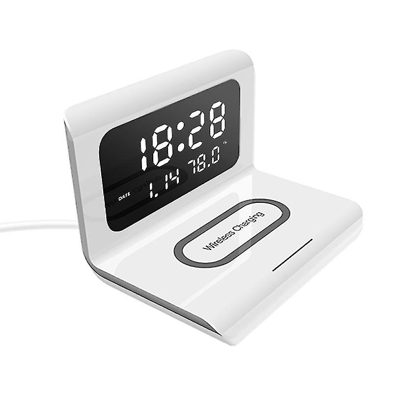 materials which are durable and sturdy for long lasting use. 5W/7.5W/10W automatic matching, compatible with QI scheme wireless charging. Come and bring one home Features -Color: White. - Material: PC and ABS fireproof material. - Size: About 17.30X12.60X12.60cm / 6.80X4.95X4.95inch. --Input interface: Type-C. -Type: Wireless charging. -Charging current: 2000 (mA). -Output power: 5W/7.5W/10W. -Input voltage and current: 5V/2A, 9V/2A. -The alarm clock is not only a clock, but also a wireless charger. -No cables or USB interface required, convenient and easy to charge. -It is compatible with multiple phone models, simple and easy to use. -Simply place down your type-c charging port phone on it for charging.