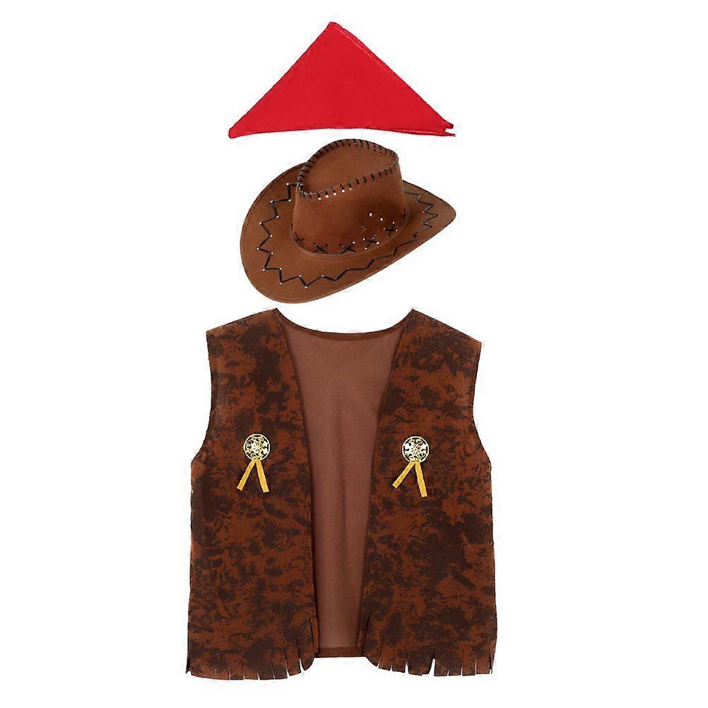 1 Set Adult Cowboy Costume Cowgirl Western Outfits Set Vest Hat Bandana For Women Men Halloween Dress Up Party Cosplay Accessories 160-180 XXL