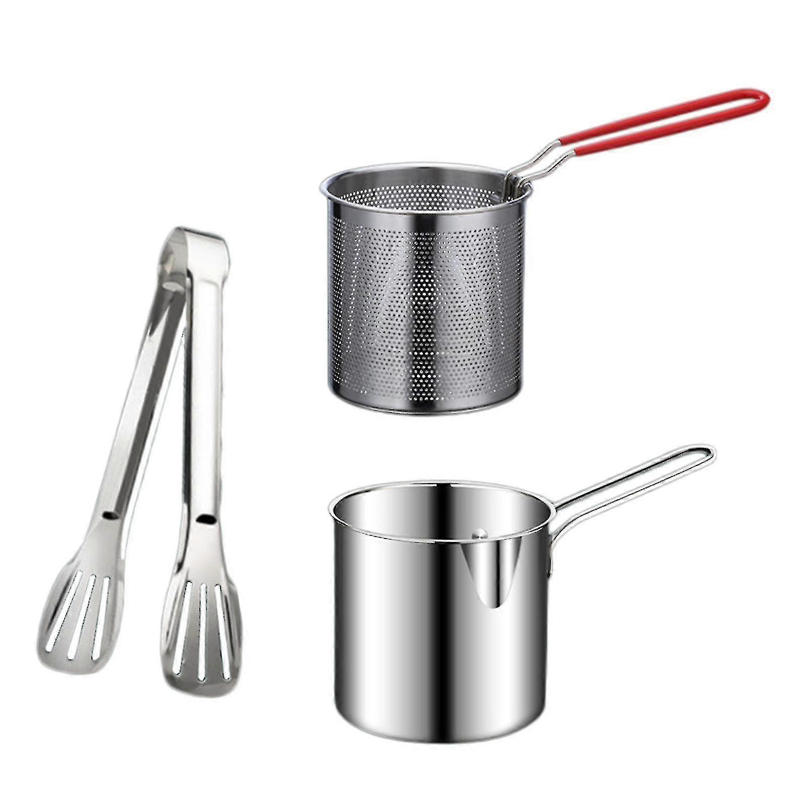 1 Set Fryer Multifunctional Mini Pot Good Heat Conductivity Stainless Steel Oil-saving Home Fryer Cooking Utensils