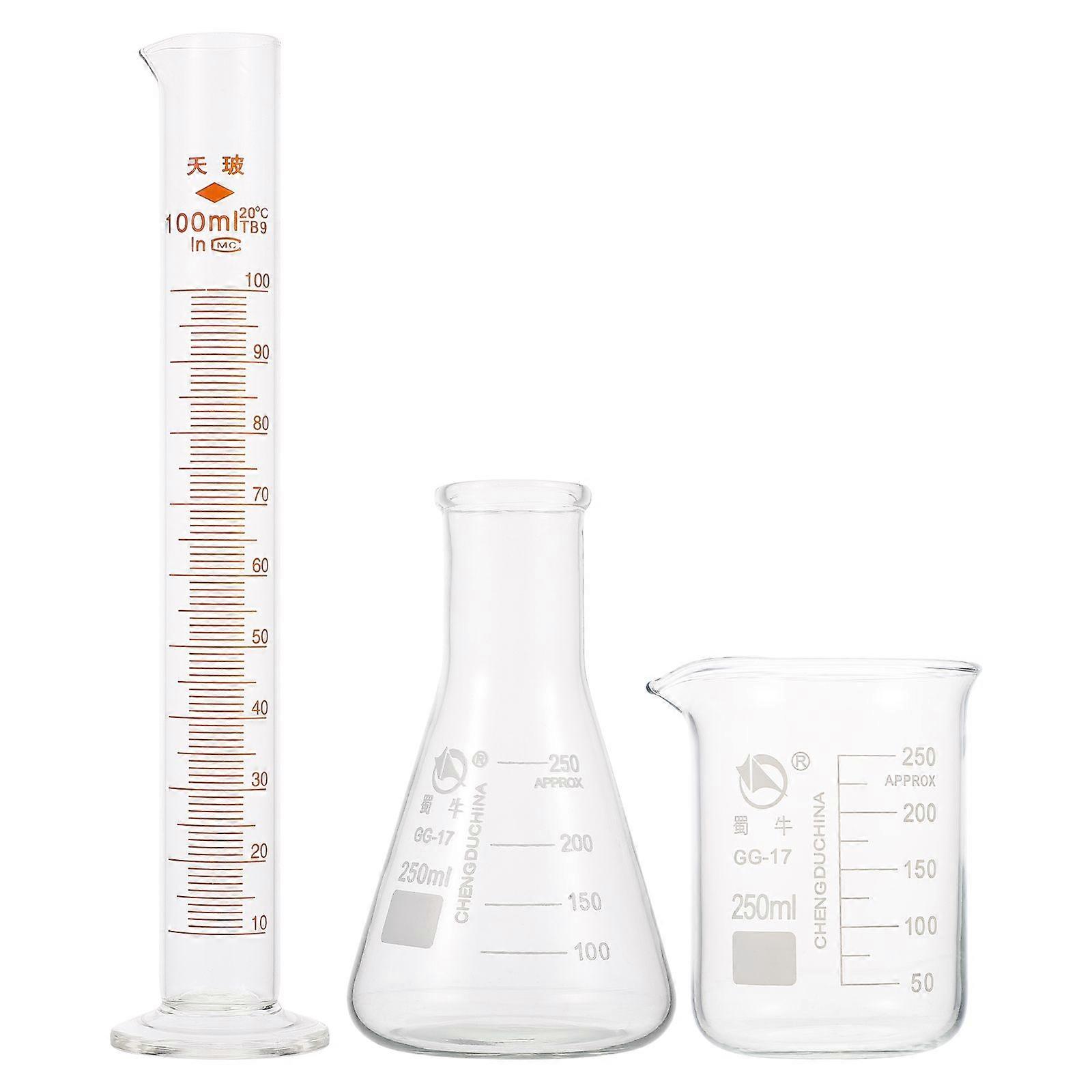 1 Set Scientific Teaching Tool Glass Beaker Measuring Cylinder Conical Bottle
