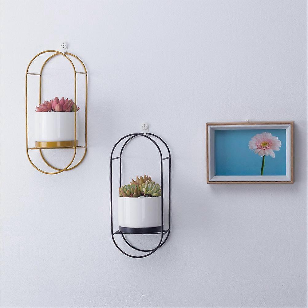1 Set Simple Iron Hanging Flowerpot Bracket Plant Pot Holder Planter Supporting Shelf with Ceramic Planter for Home Garden Balcony (White Planter, Gol