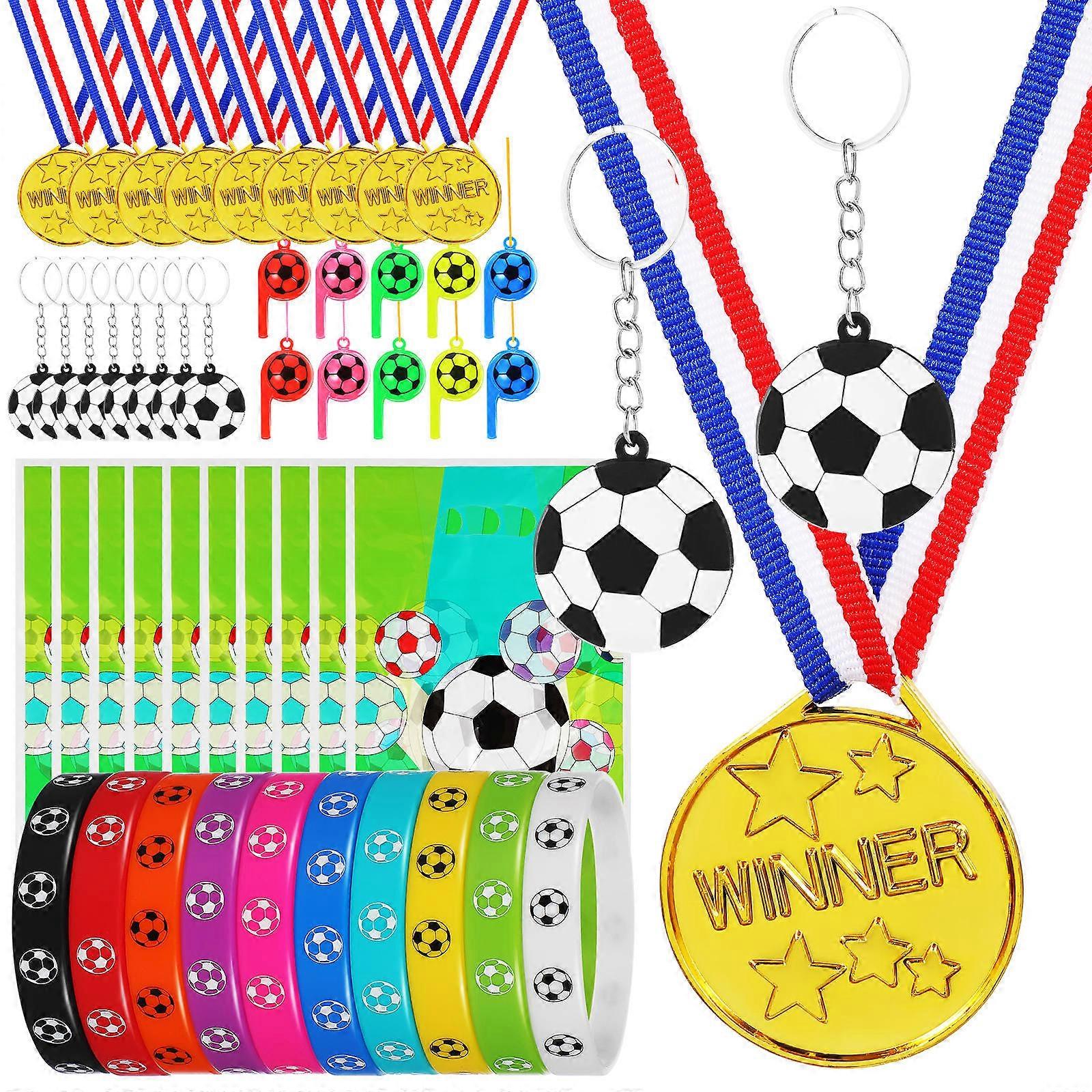 1 Set Soccer Party Bag Fillers with Keychains, Whistles, Wristbands, and Medals for Sports Party Favors