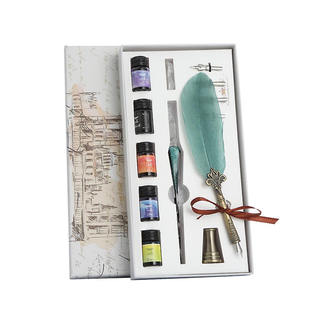 1 Set Vintage Calligraphy Feather Dip Pen Fountain Pens Writing Ink Nibs Stationery School Birthday Gifts