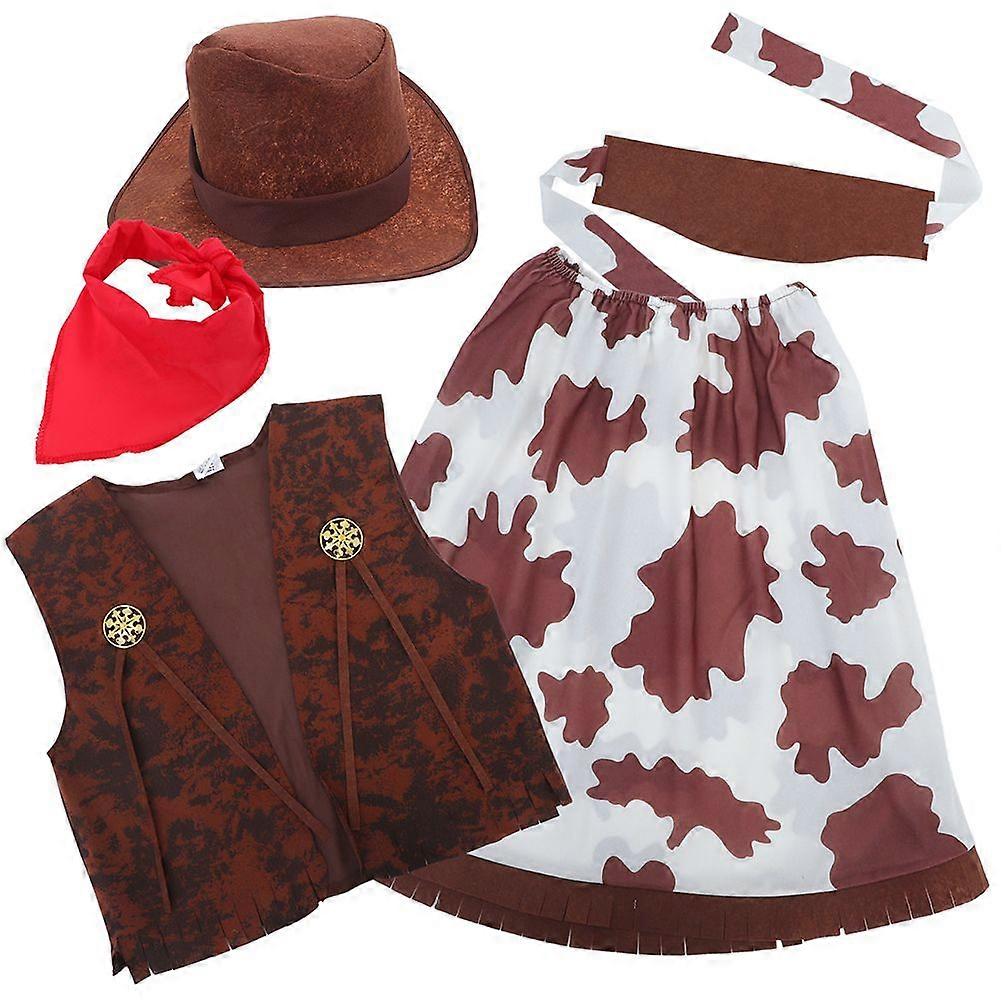 1 Set Pirate Cowgirl Costume For Kids: Cosplay Hat Dress Up Vest Bandana - Western Dress-Up Outfit - Girls Skirt Birthday Halloween Party Supplies