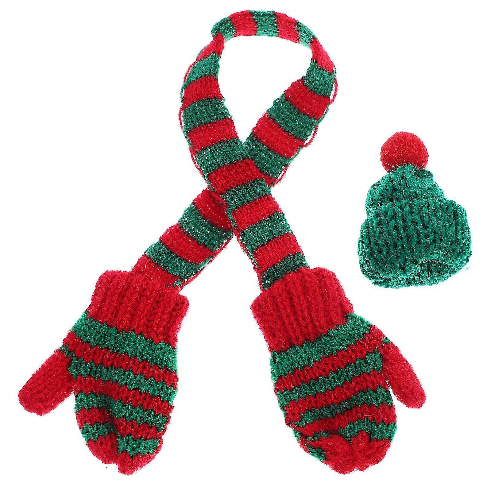 1 Set Christmas Mini Knit Hat and Mini Scarf Christmas Tree Ornaments Cute Doll Clothes Accessory