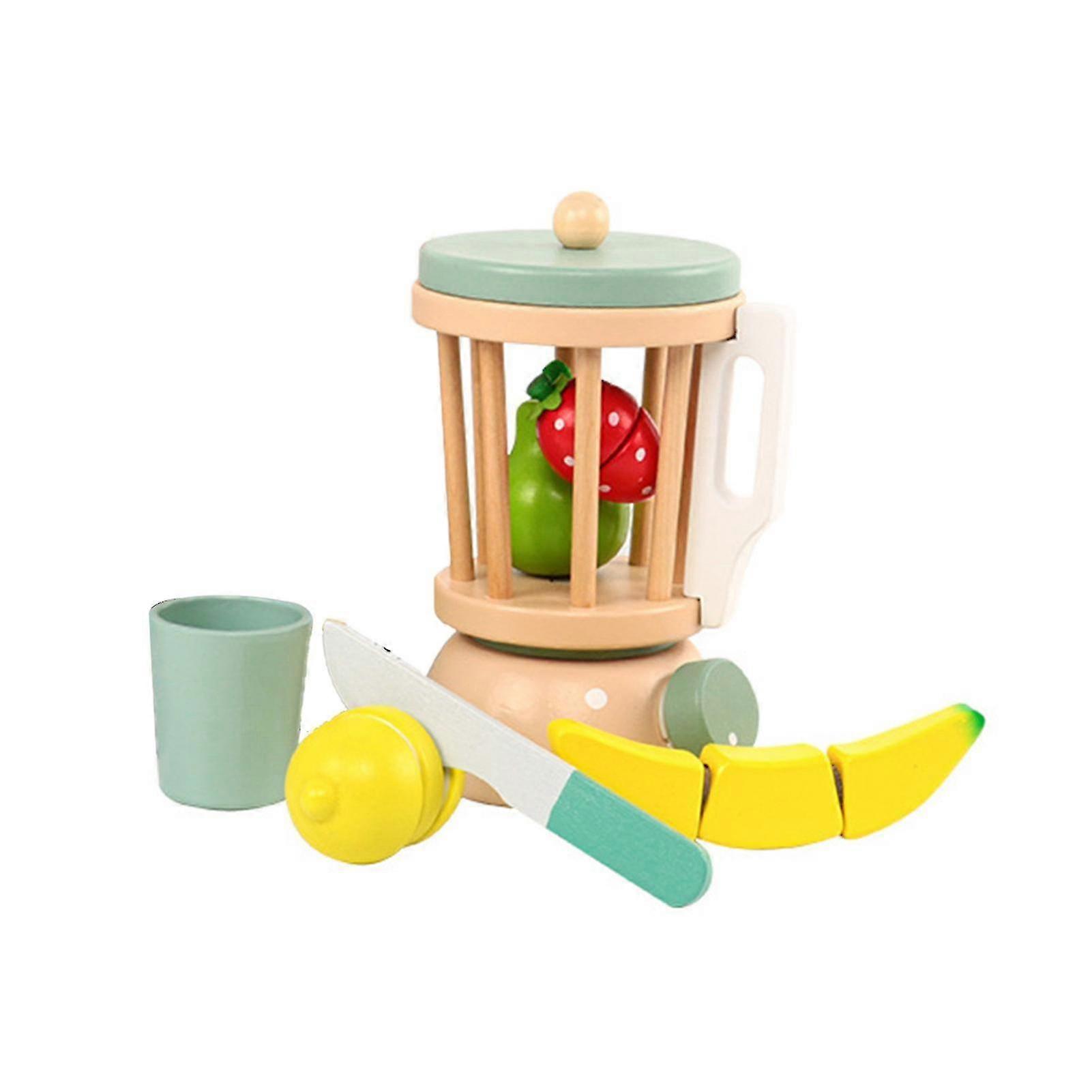 1 Set Simulation Juicer Wooden Cutter Cup Strawberry Lemon Banana Rich Accessories Seven-piece Set Skills Learning Educational Toy Kids Boys Girls Pre